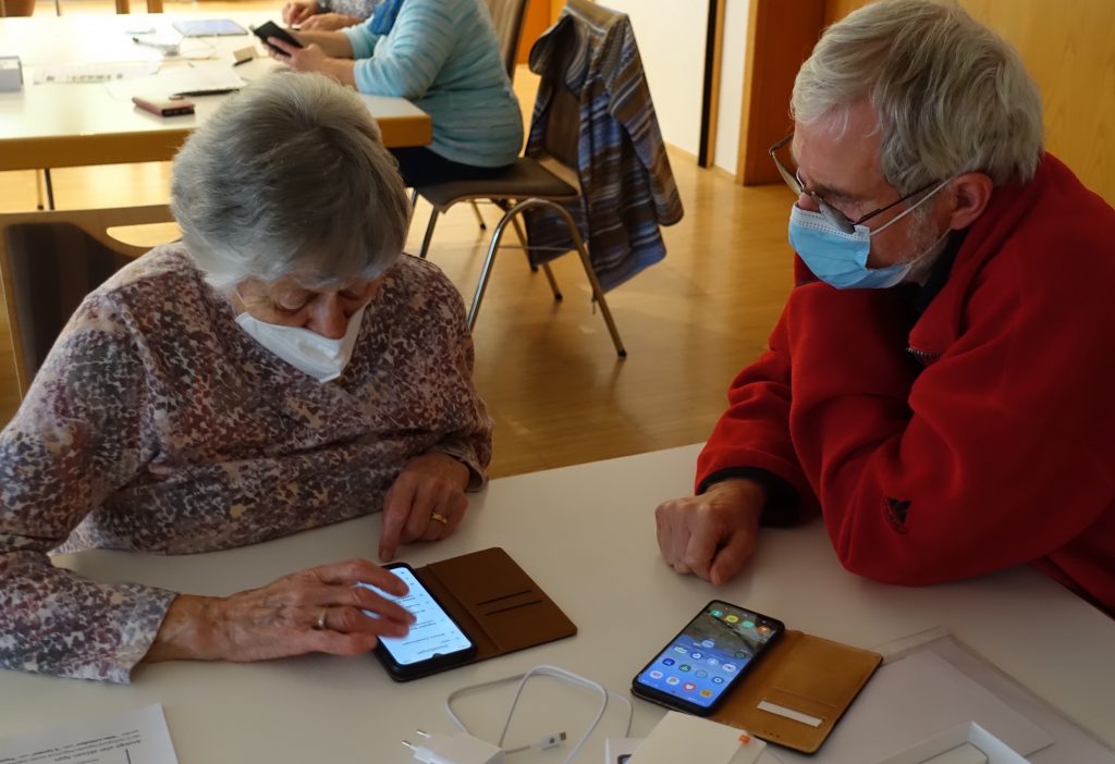 Anfang November wurden die Geräte den teilnehmenden Senioren übergeben. Bei den Einführungsveranstaltungen wurden die Grundfunktionen der Geräte erklärt und die Senioren ihren Paten vorgestellt. Die ältesten Teilnehmer sind bereits über 90 Jahre alt und sind nur auf Grund dieser Unterstützung in der Lage den großen Schritt in die Welt der Smartphones zu machen.