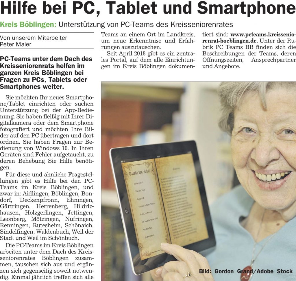 Am 29.4.2019 berichtete die SZBZ (Sindelfinger Zeitung/Böblinger Zeitung) über die Arbeit der PC-Teams im Kreis Böblingen: